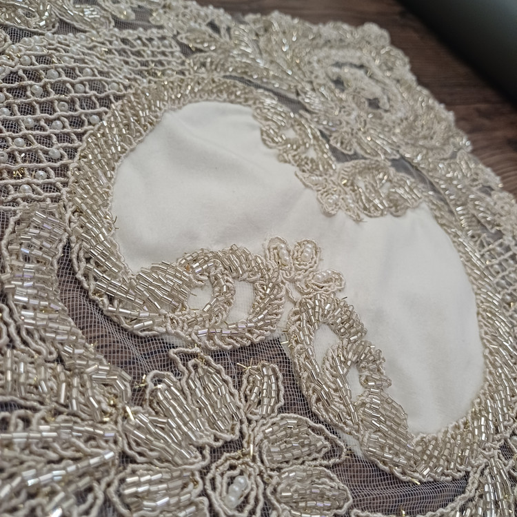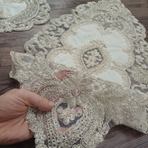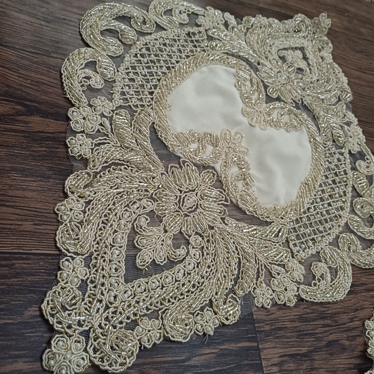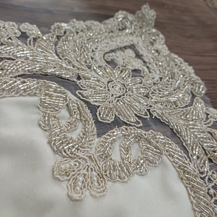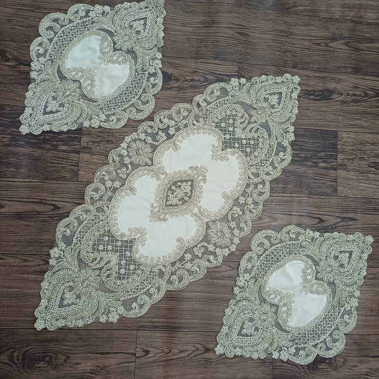 ست سه تیکه رومیزی جلومبلی کارشده با مروارید و ملیله
