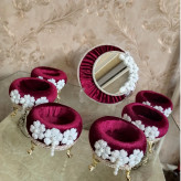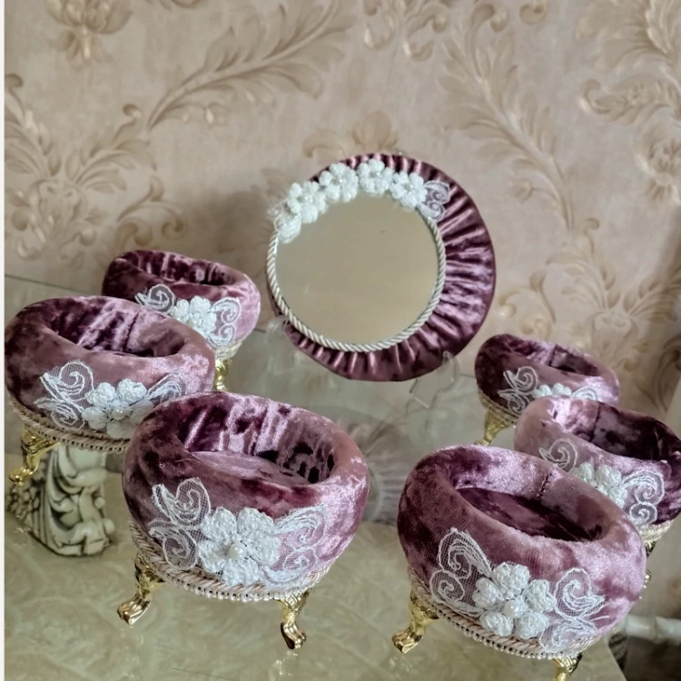 ظروف هفتسین شامل شش عدد ظرف و یک عدد اینه در رنگبندی دلخواه شما قابل اجراست جنس مخمل