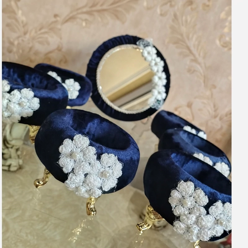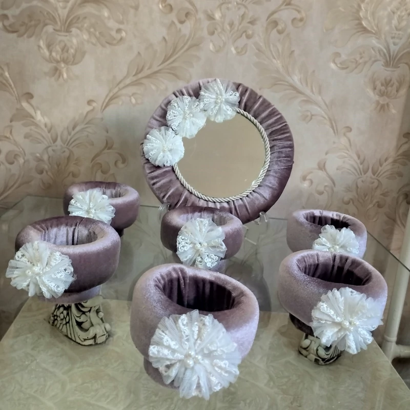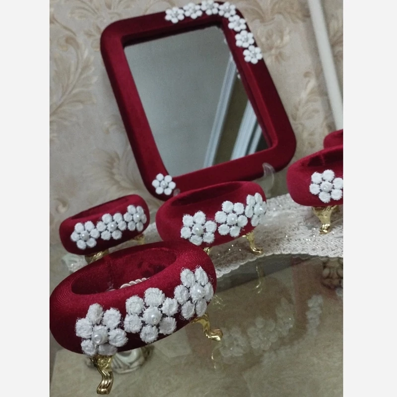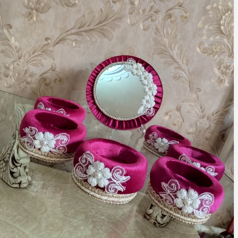 ظروف هفتسین شامل شش عدد ظرف و یک عدد اینه در رنگبندی دلخواه شما قابل اجراست جنس مخمل
