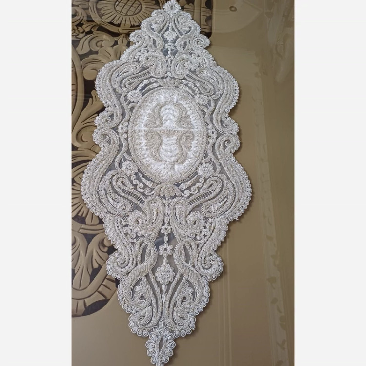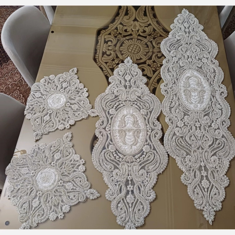 ست سه تیکه جلو مبلی و رانر نهارخوری کارشده با مروارید و ملیله مخصوص جهیزیه