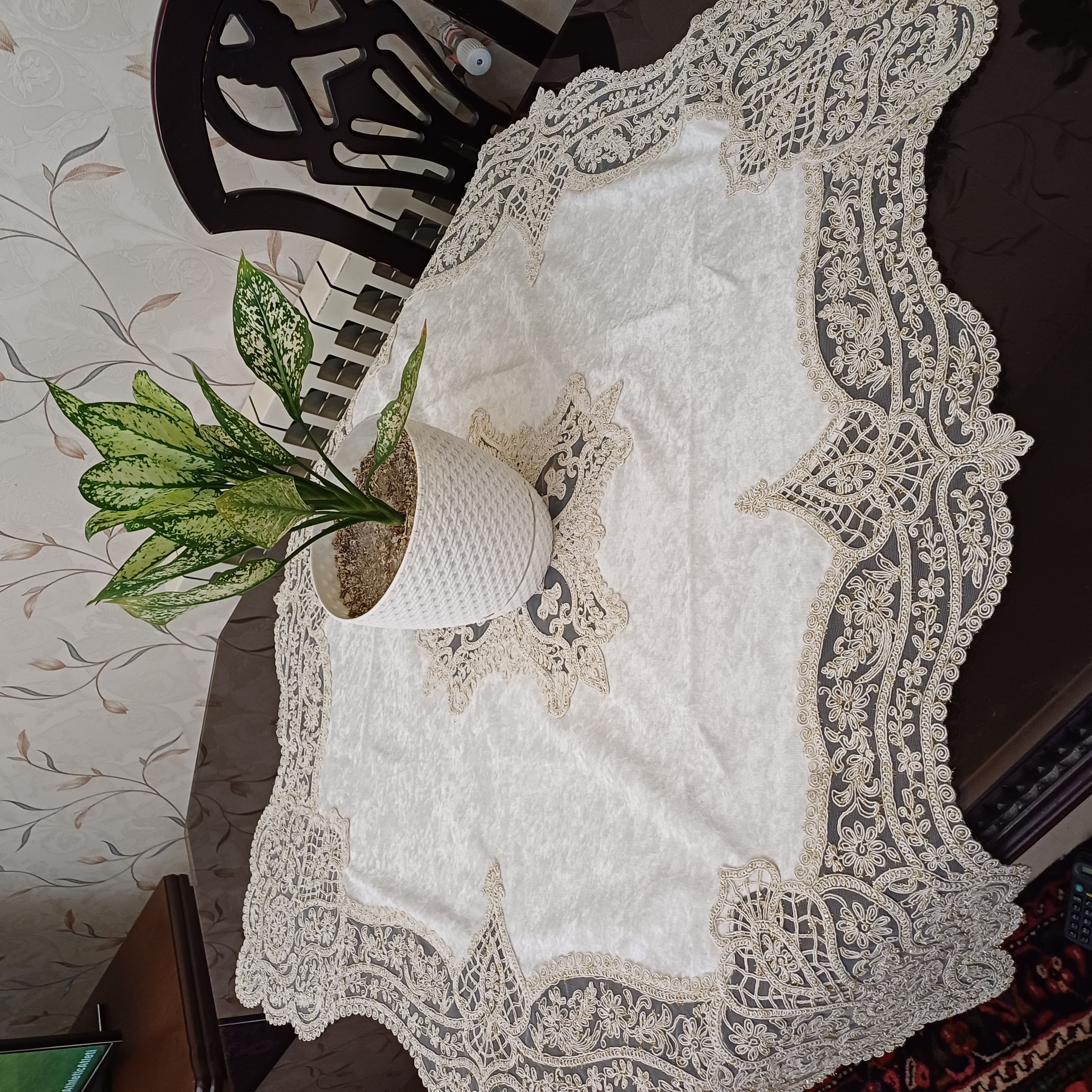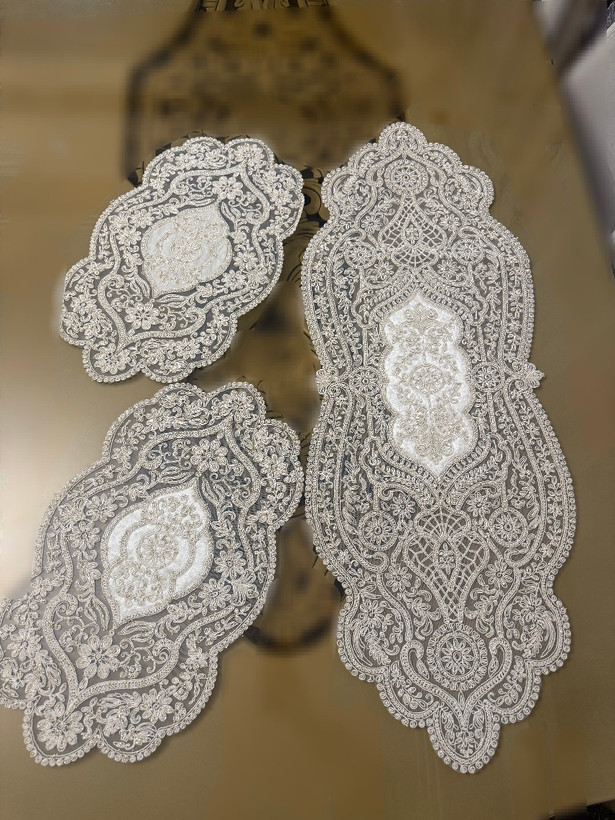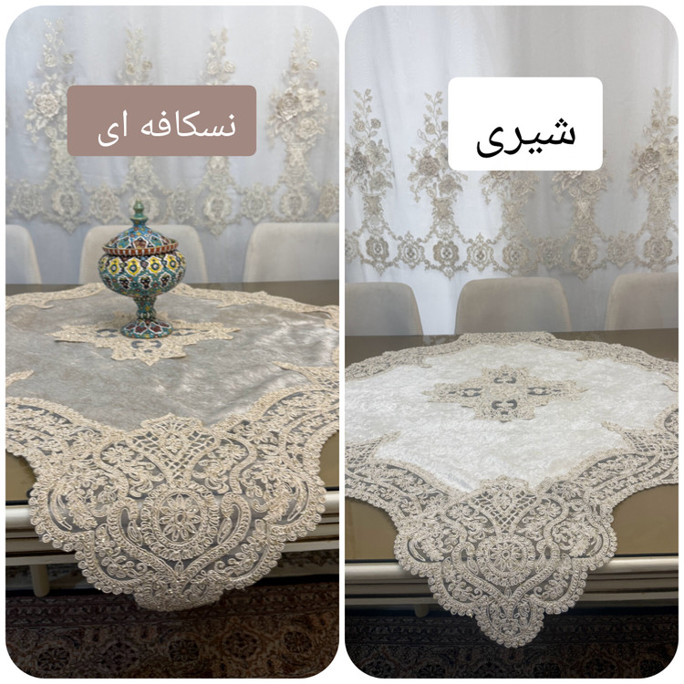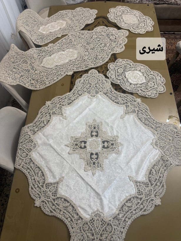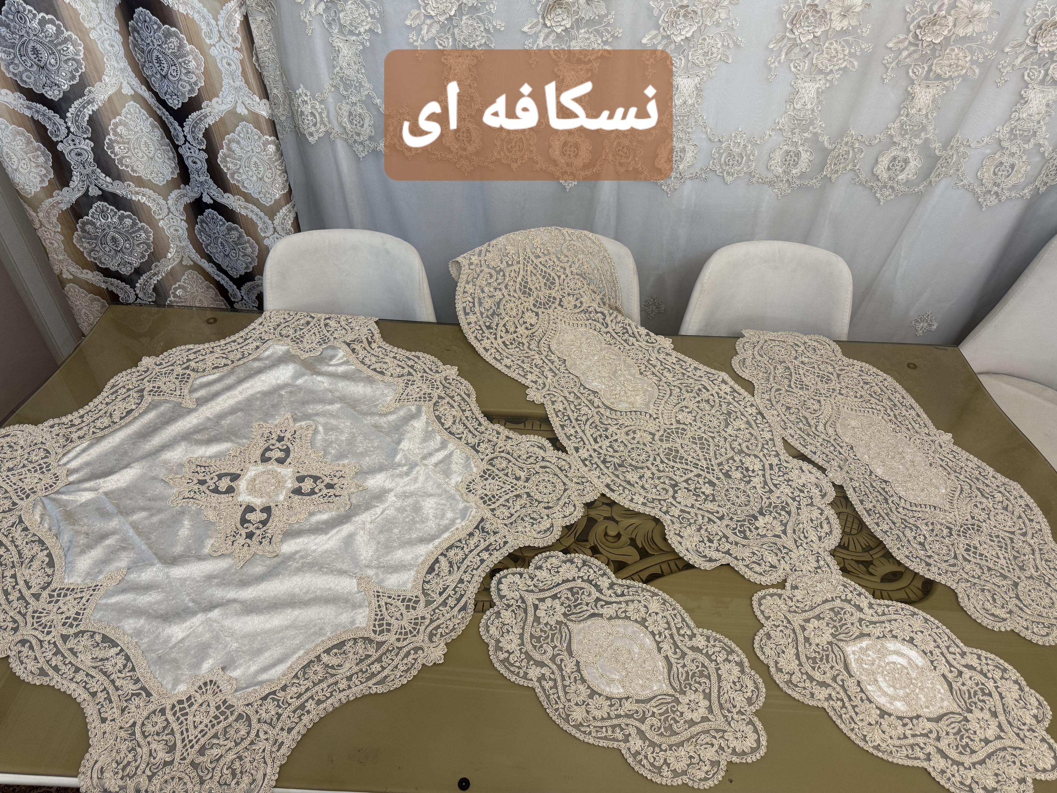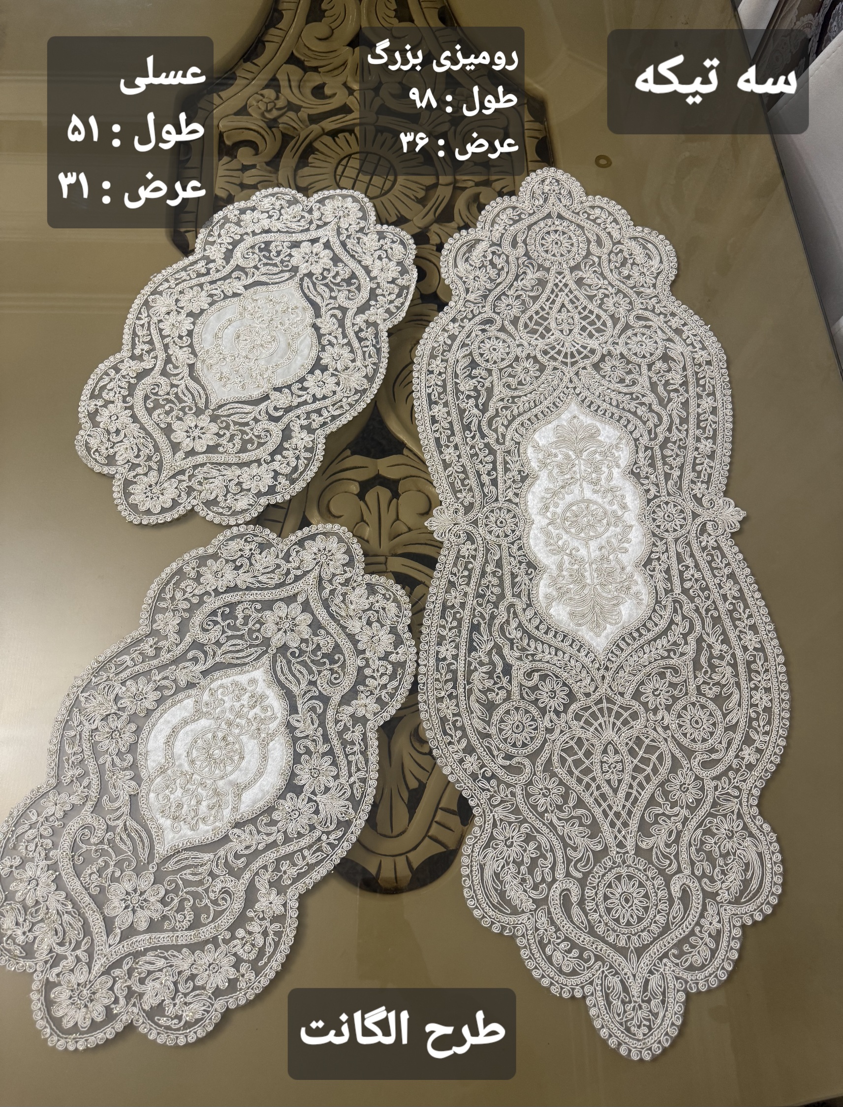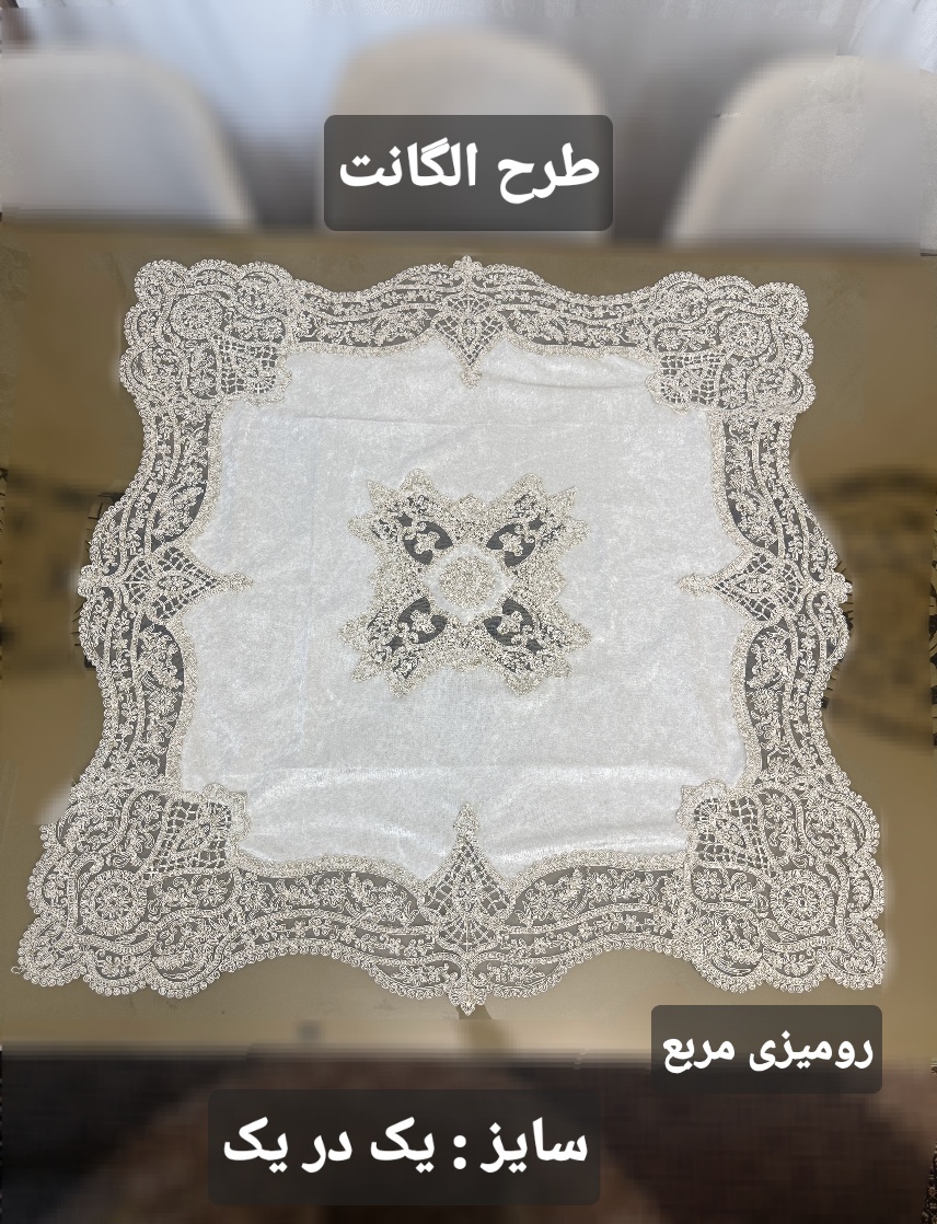 ست رومیزی ۵ تیکه مربع دار زردوز طرح 《الگانت》