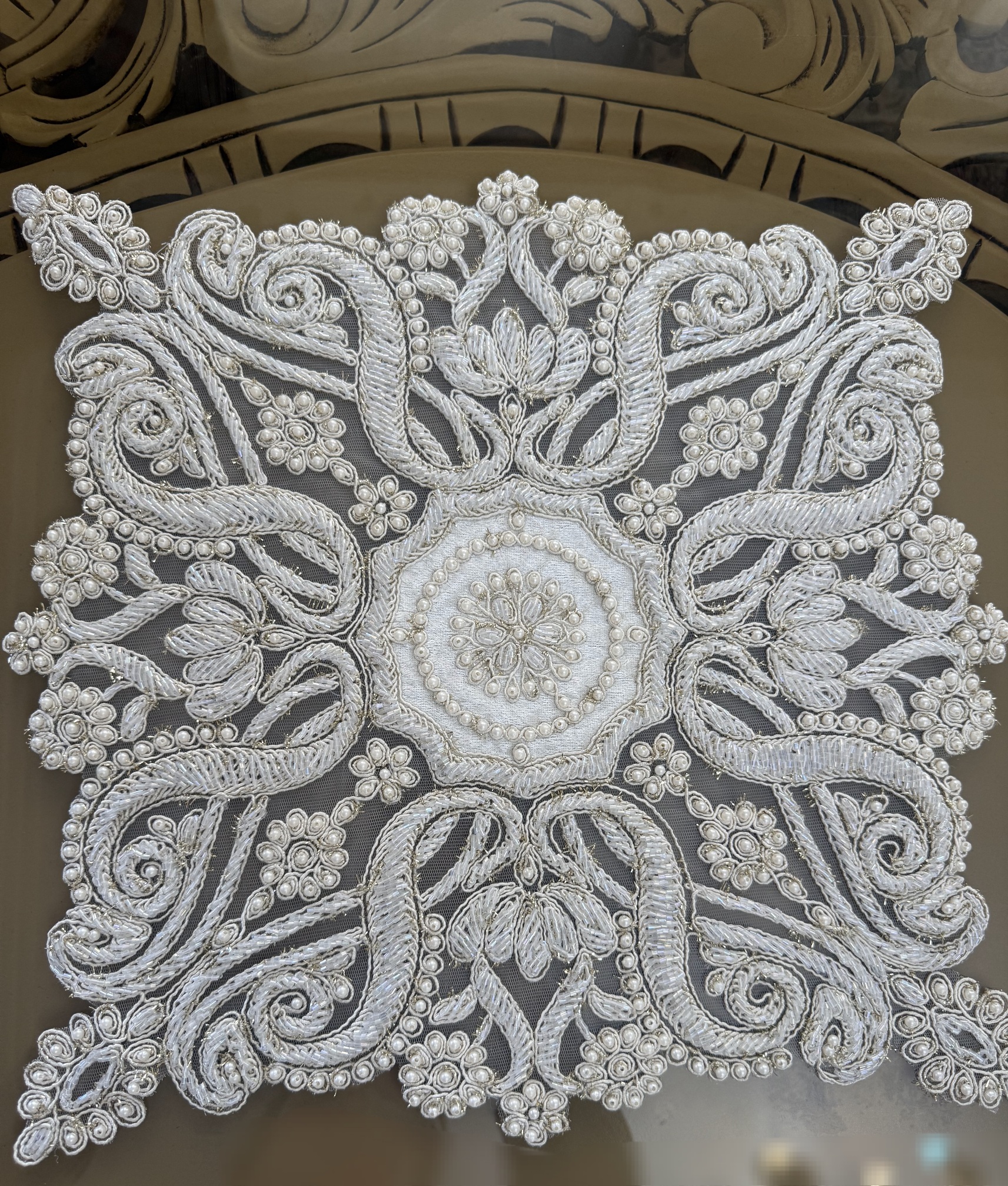 ست سه تیکه رومیزی کارشده با مروارید و ملیله طرح(ویکتوریا)