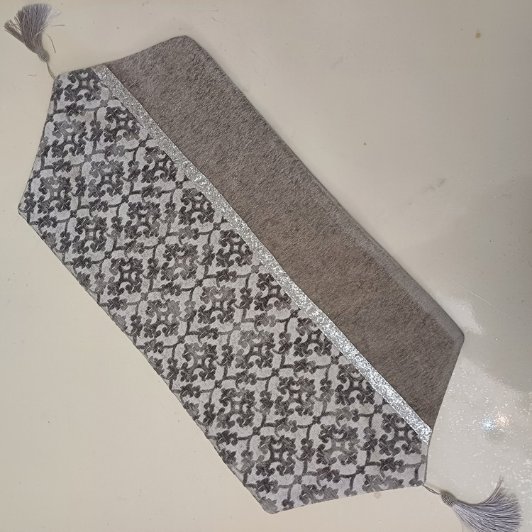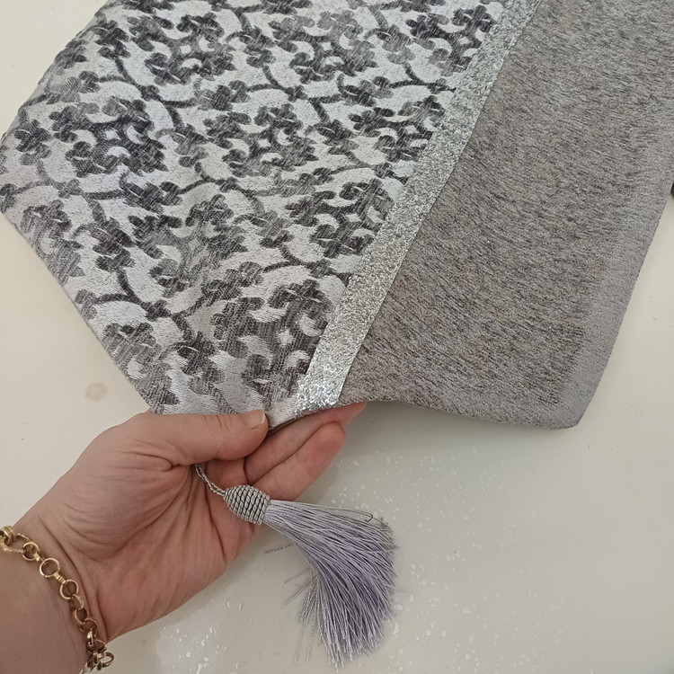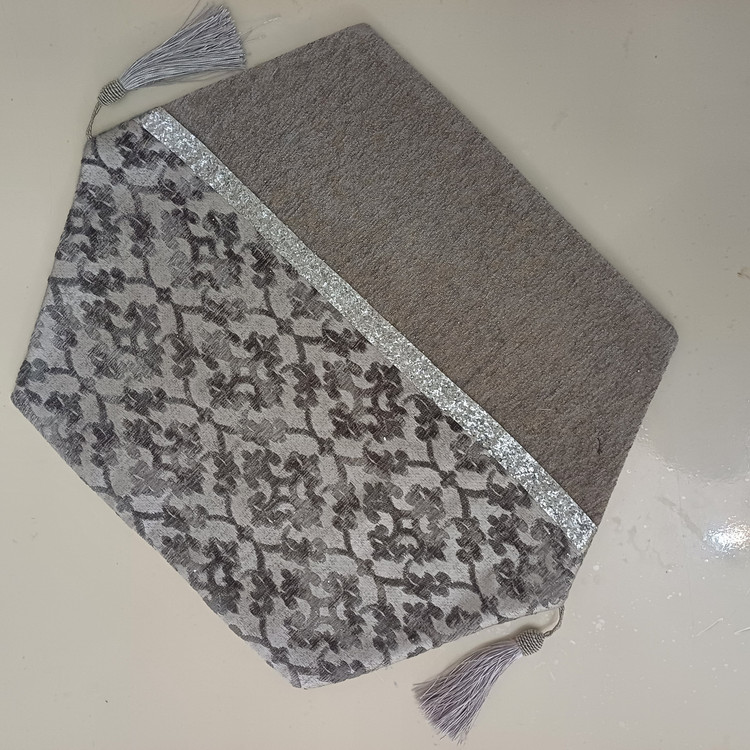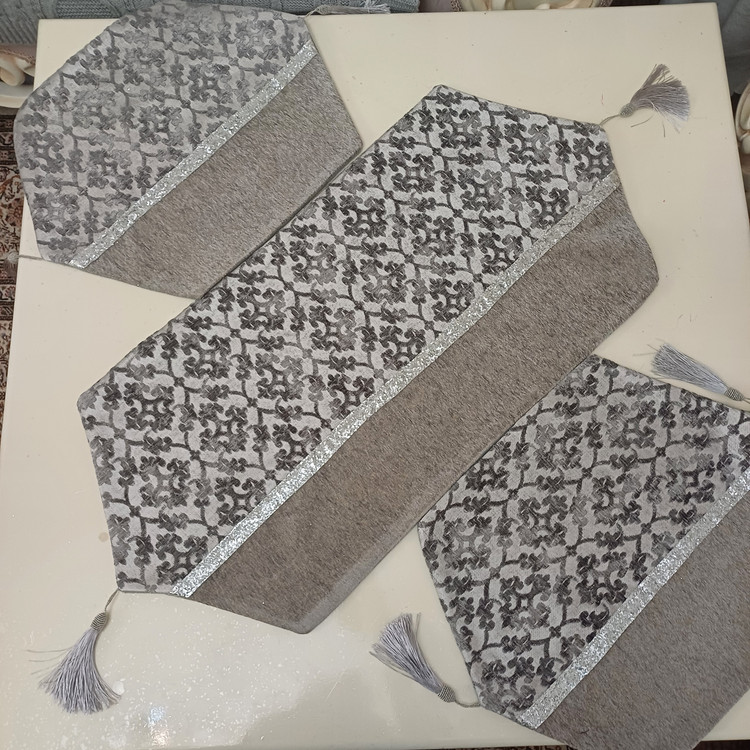 ست سه تیکه رومیزی مخملی《طرح خاتون》توسی نقره ای