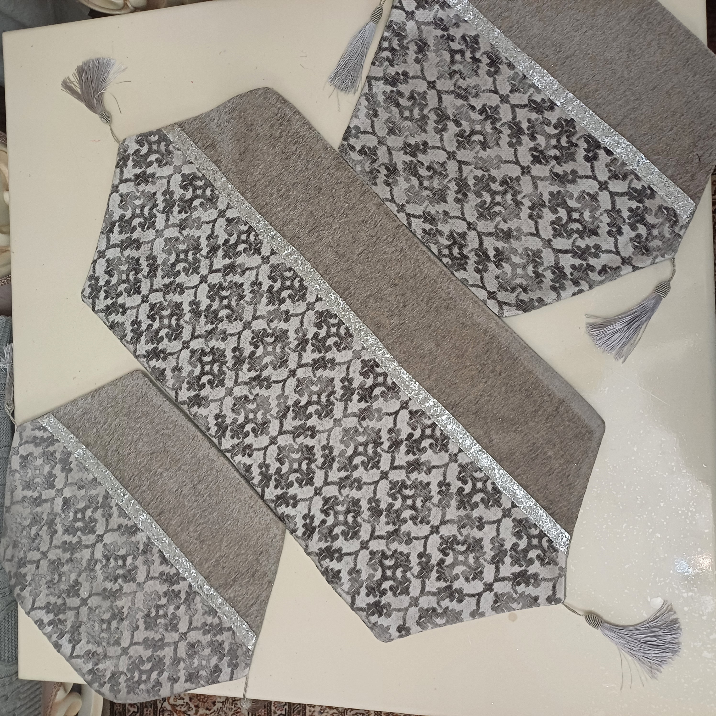 ست سه تیکه رومیزی مخملی《طرح خاتون》توسی نقره ای