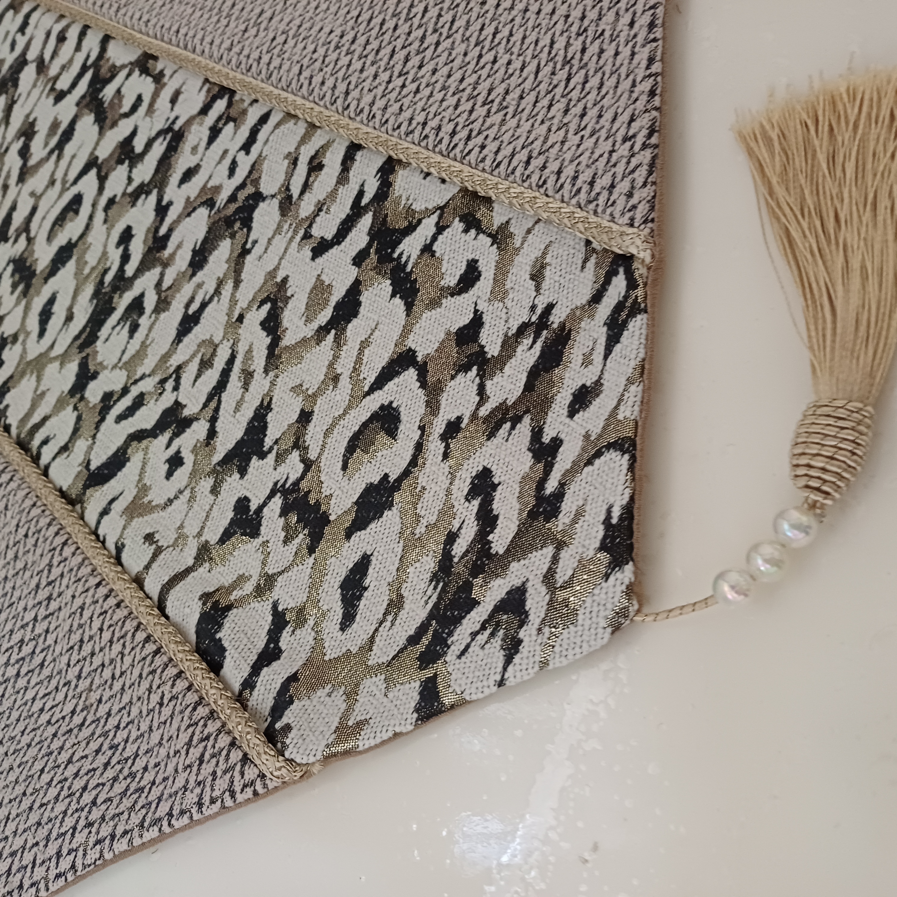 رومیزی پلنگی ترکیبی رنگ زغالی