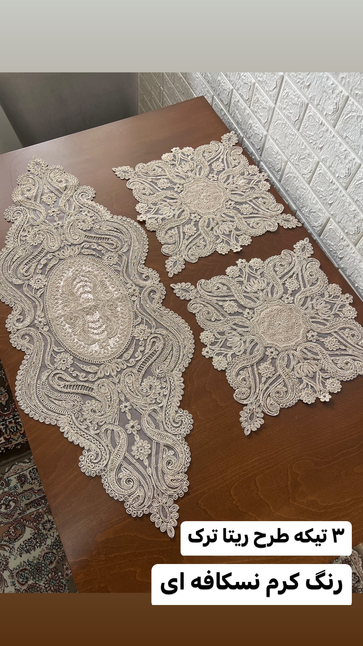 رومیزی سه تیکه جلومبلی زربافت جهیزیه مدل 《ویکتوریا》