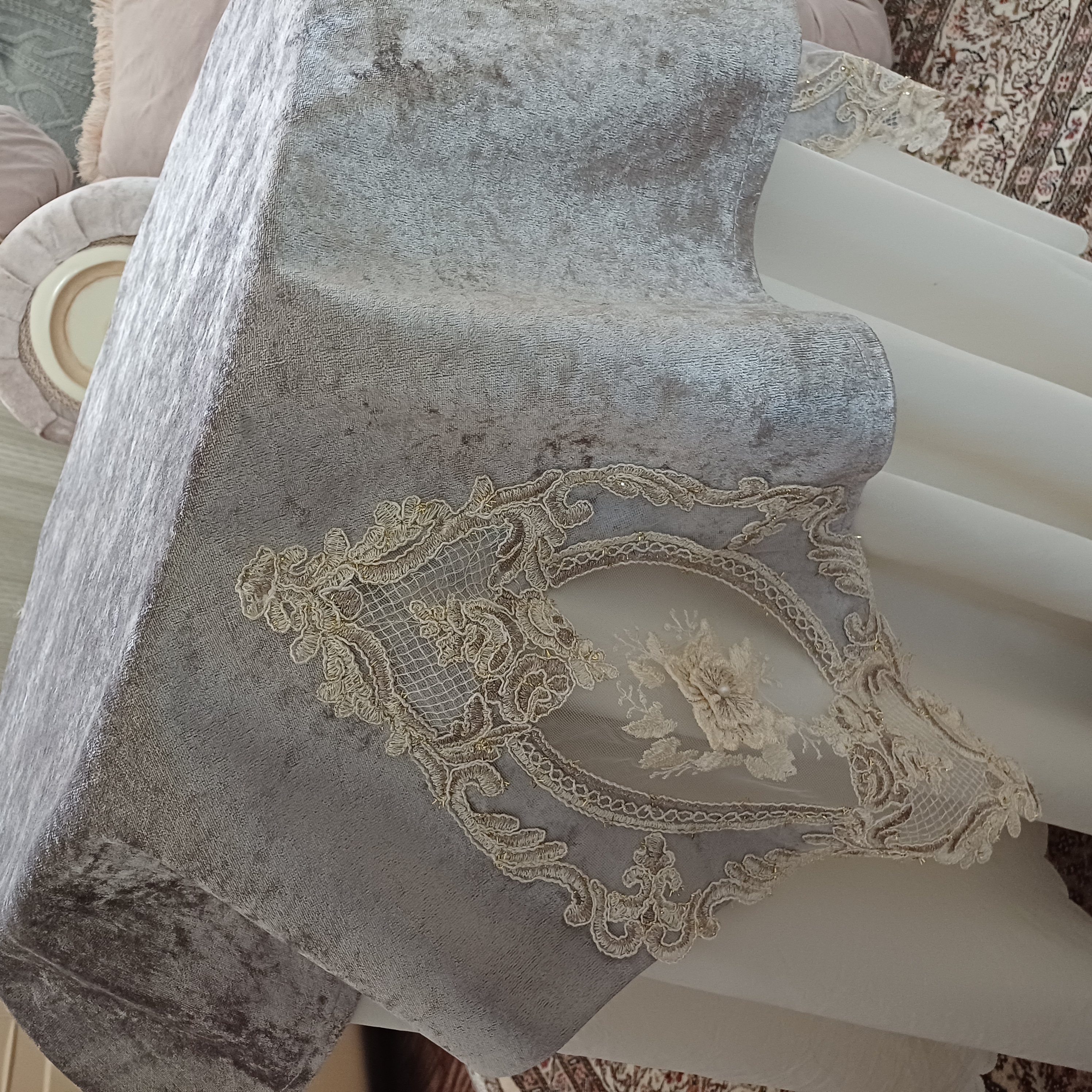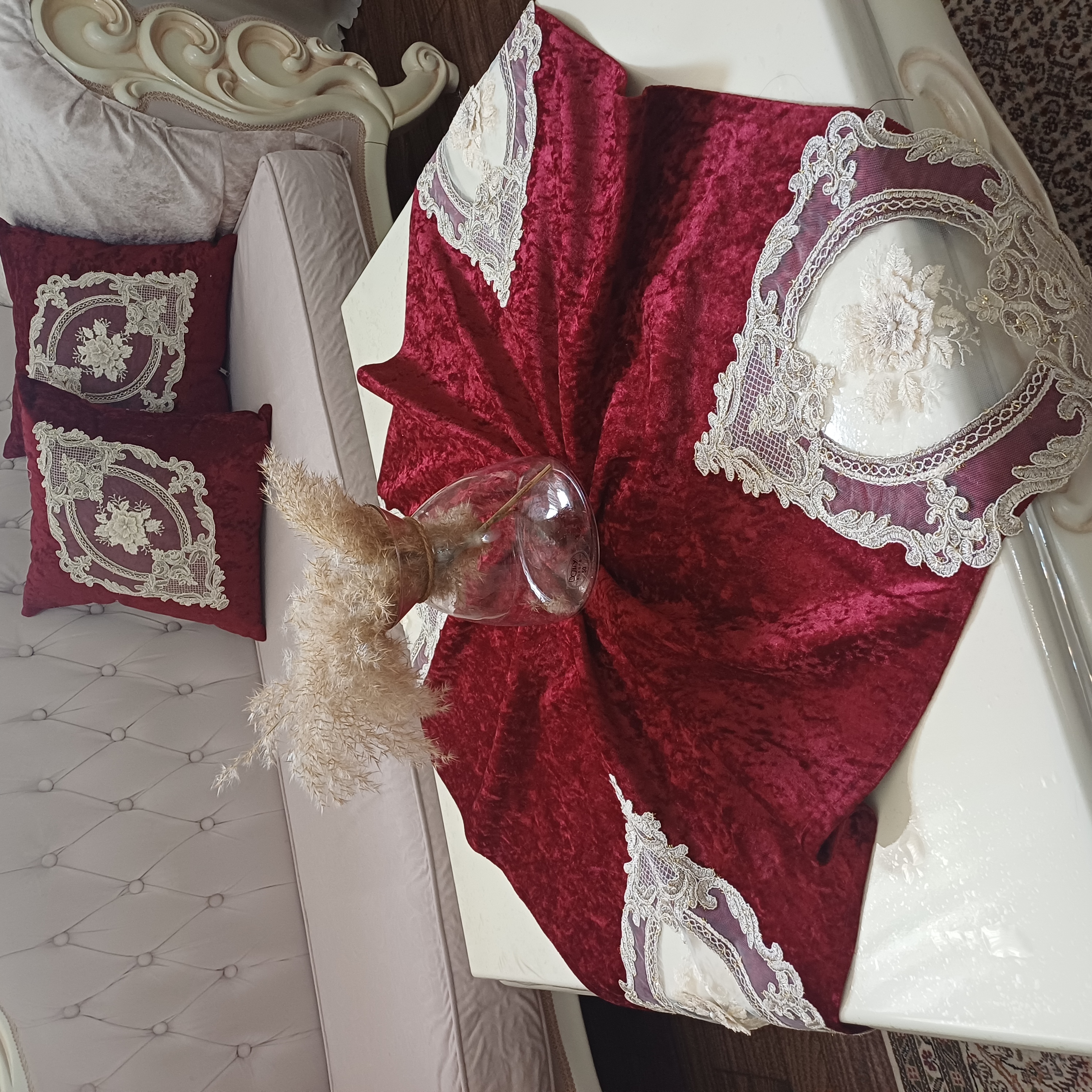 رومیزی جلومبلی مربع دانتل