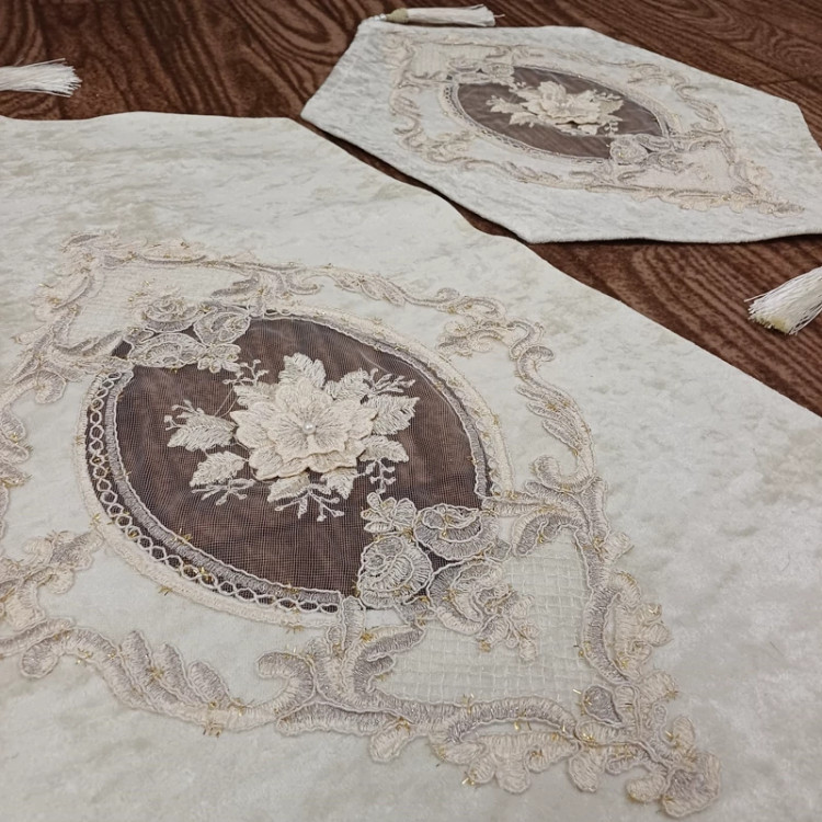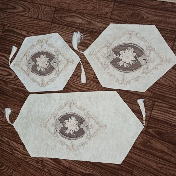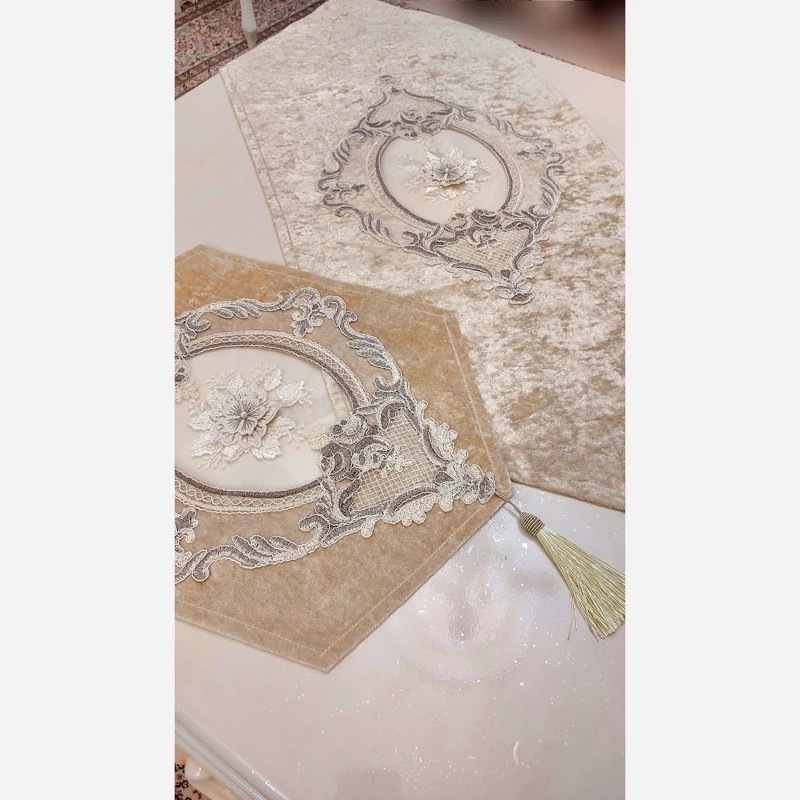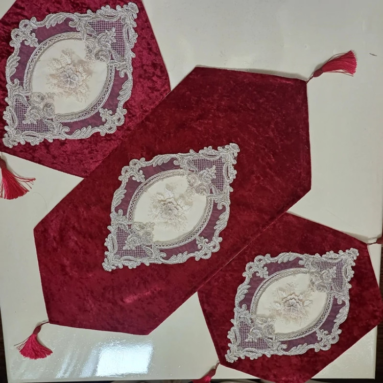 رومیزی سه تیکه دانتل مخصوص جهیزیه در رنگبندی