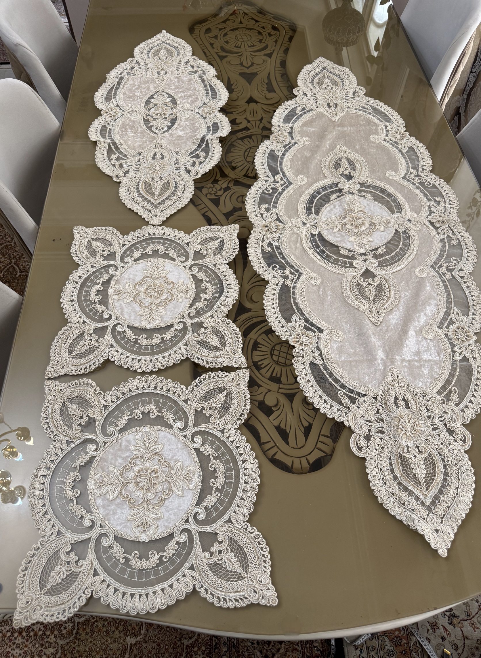 ست چهار تیکه رومیزی طرح (گل رز) (سه تیکه جلومبلی + رانر)